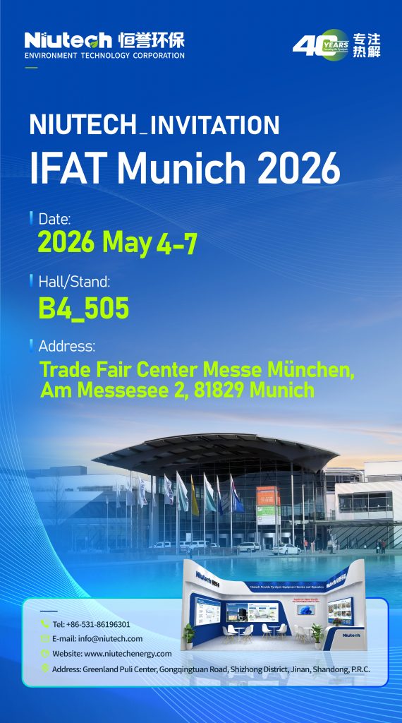 As a leading global provider of integrated pyrolysis solutions, Niutech Environment Technology Corporation will present our latest generation high-capacity industrial continuous intelligent pyrolysis plant at IFAT Munich 2026. We warmly invite you to visit us at Hall B4, Stand 505, Messe Munchen, on May 4-7, 2026, to discuss innovation solutions and cooperation opportunities in waste resource recovery.